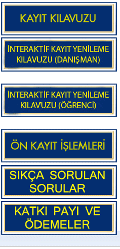 Personel Yönetmelik ve Yönergeler Akademik Takvim Kılavuzlar Tercih Rehberi Formlar-Tablolar ÖSYM Sınav Başvuru İşlemleri Muafiyet Not Dönüşüm Tabloları İş Akışı